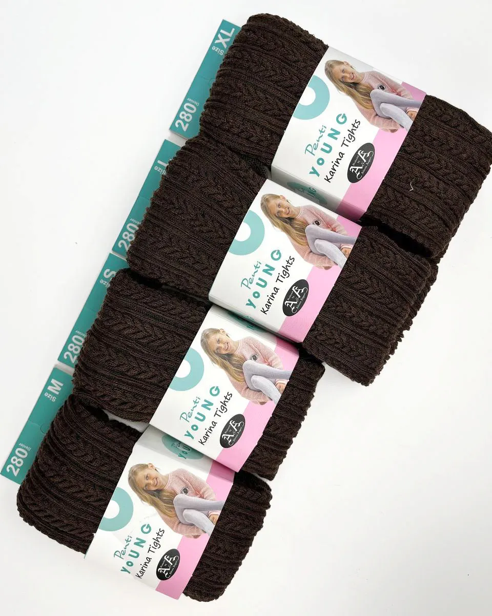جورابشلواری بافت بچگانه قهوه ای پنتی؛ نرم، گرم و کشسان با کیفیت وارداتی، مناسب کودکان ۲ تا ۹ سال.