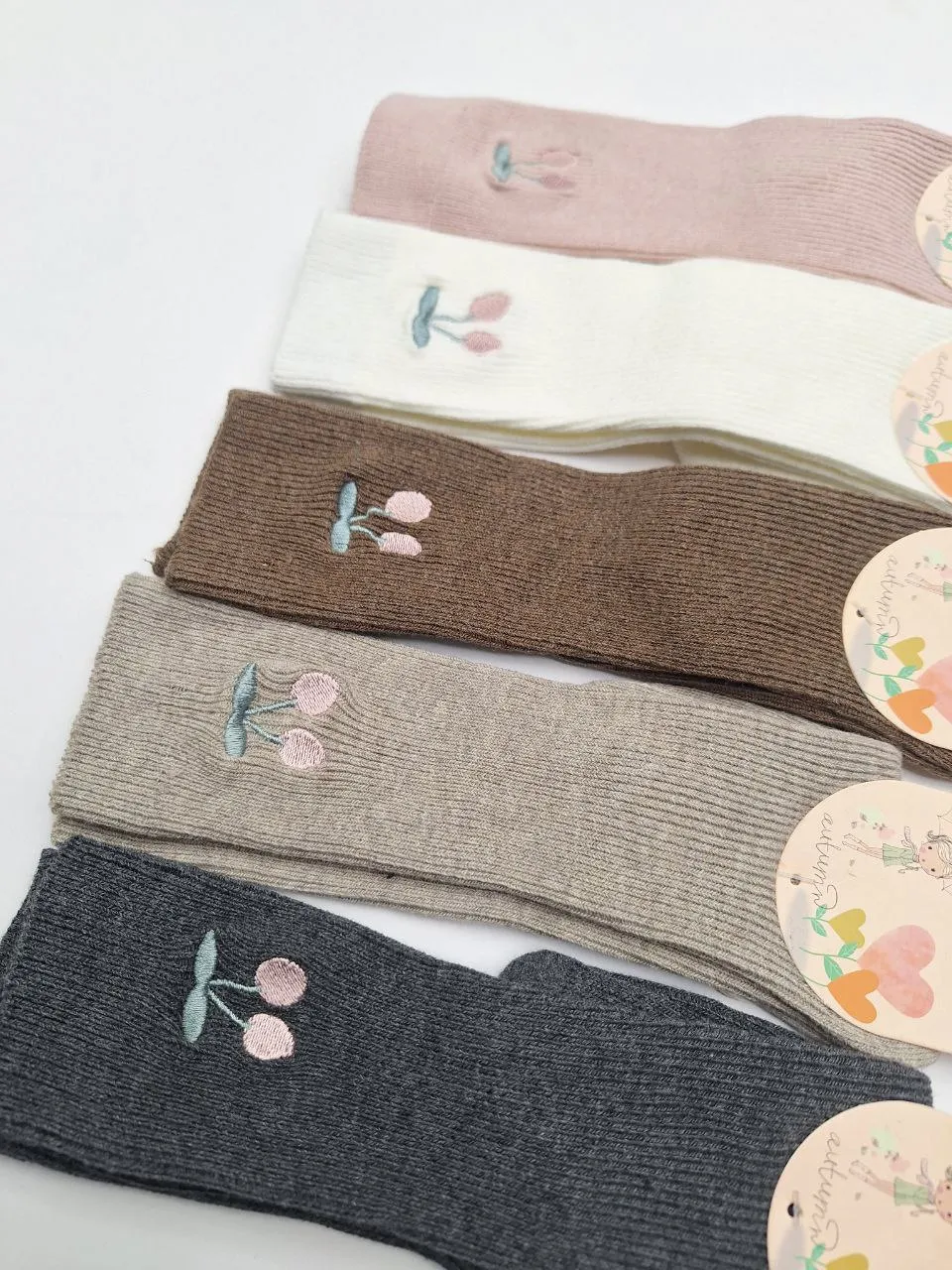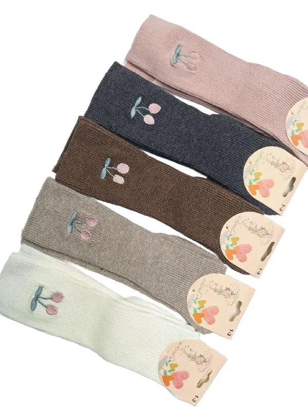 جوراب بچهگانه تا زیر زانو با طراحی گیلاس، مناسب سنین ۱ تا ۵ سال، در رنگهای متنوع و از جنس نخ پنبهای ضدحساسیت، انتخابی راحت و شیک برای کودکان دلبند شماست.