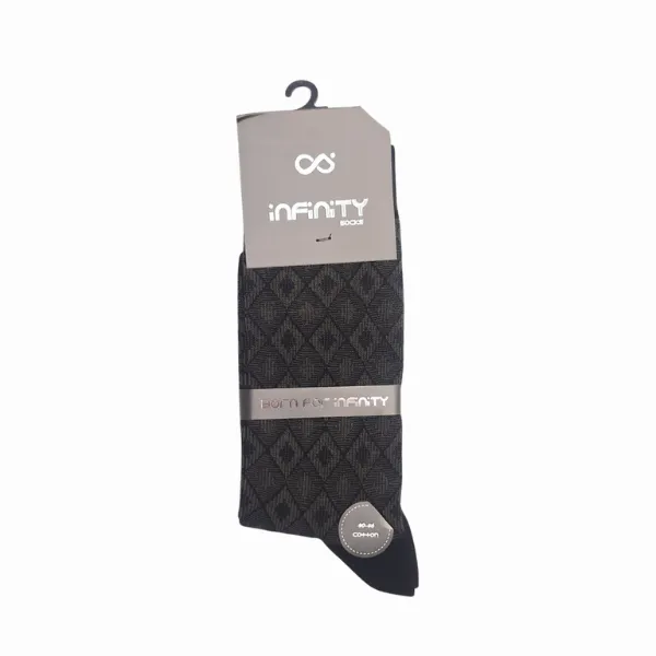 جوراب ساق بلند مردانه اینفینیتی، تولید شده از نخ پنبه با طراحی تمیز و بادوام، مناسب استفاده روزمره در تمام فصول و دارای خاصیت تنفس‌پذیری.