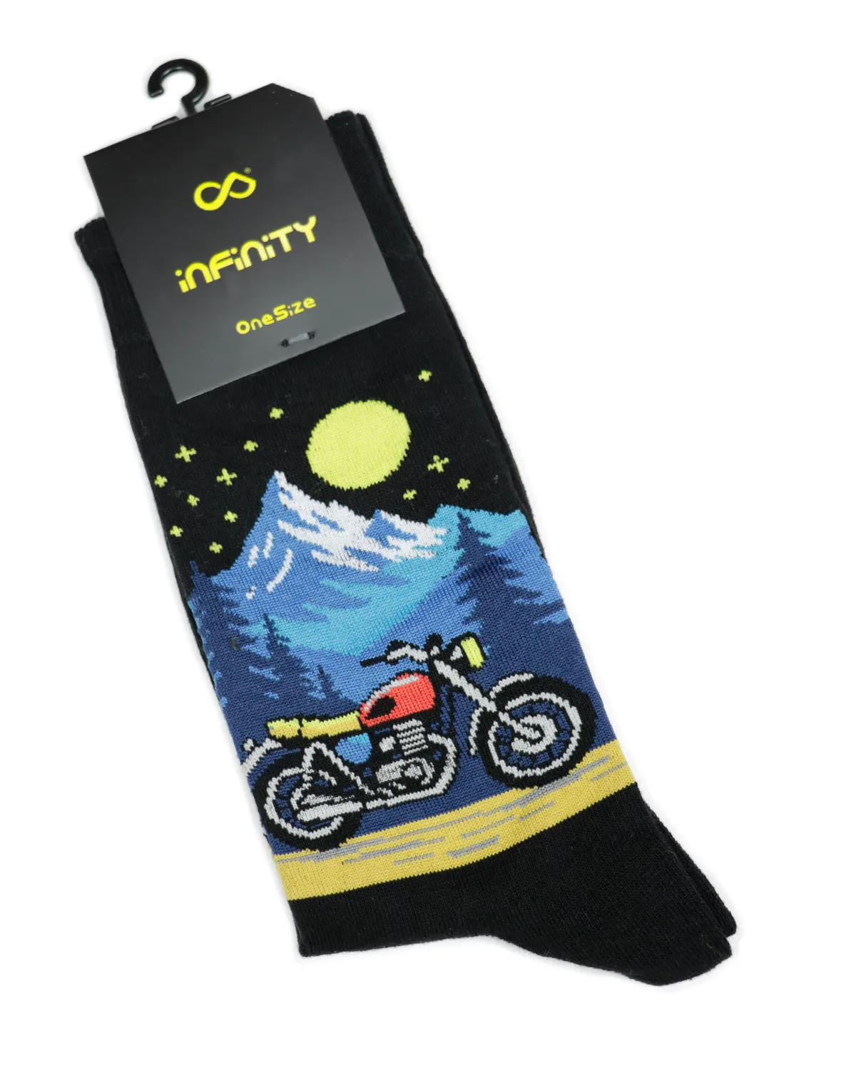 اگر دنبال یک جوراب ساق بلند مردانه فانتزی هستی که هم راحت باشه هم استایل خاص‌تری به تیپت بده، این مدل با طرح موتور انتخاب جذابیه.