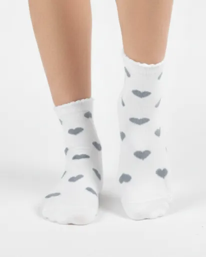 این محصول در رنگهای سفید و طوسی با طرحهایی مانند قلب، گل و چاپ فانتزی ارائه میشود که جلوهای دلنشین و دخترانه به تیپ شما میبخشد. بخش لبهدار جوراب نیز بهصورت موجدار طراحی شده که ظاهری متفاوت و جذابتر از جورابهای ساده دارد.