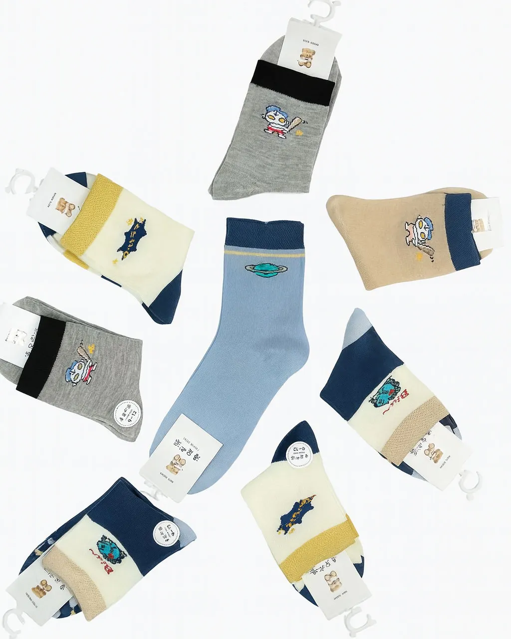 این جورابها در ۵ طرح مختلف با نقوش فضانوردی و سیارهای عرضه میشوند. طرحها بهصورت گلدوزی شده روی جوراب هستند و حس ماجراجویی و تخیل کودک را تقویت میکنند. رنگبندی متنوع و هماهنگ آنها نیز باعث میشود با لباسهای روزمره یا لباس فرم مدرسه بهراحتی ست شوند.