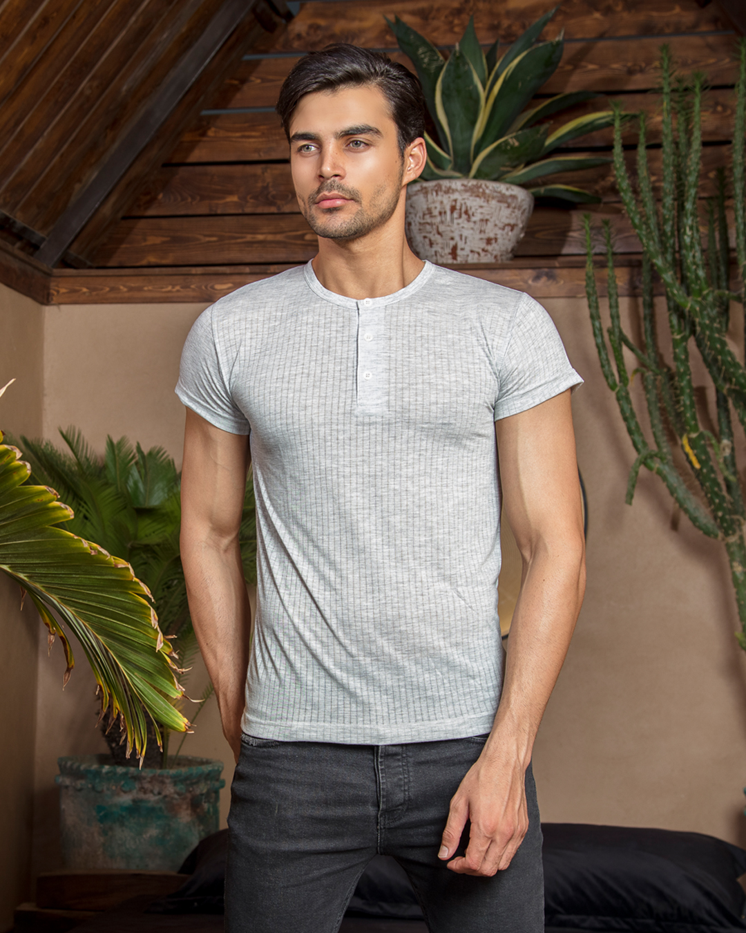 زیرپوش مردانه نیم آستین یقه سه دکمه سوزن خالی ملانژ