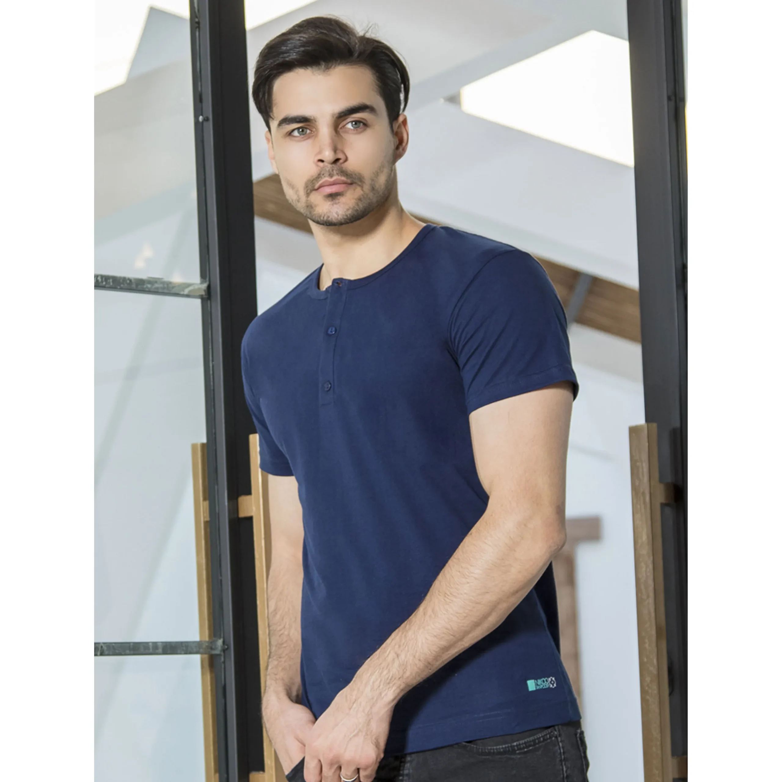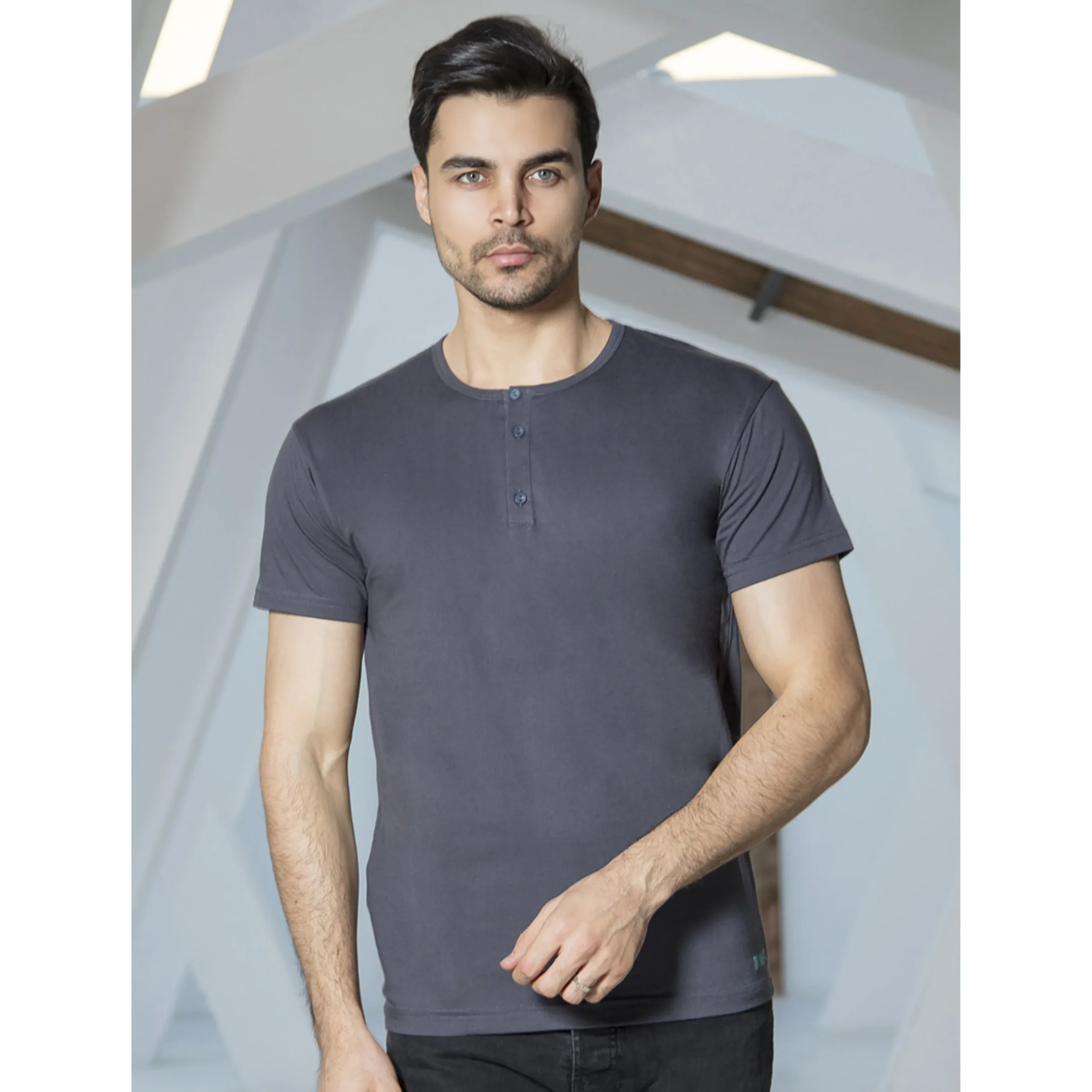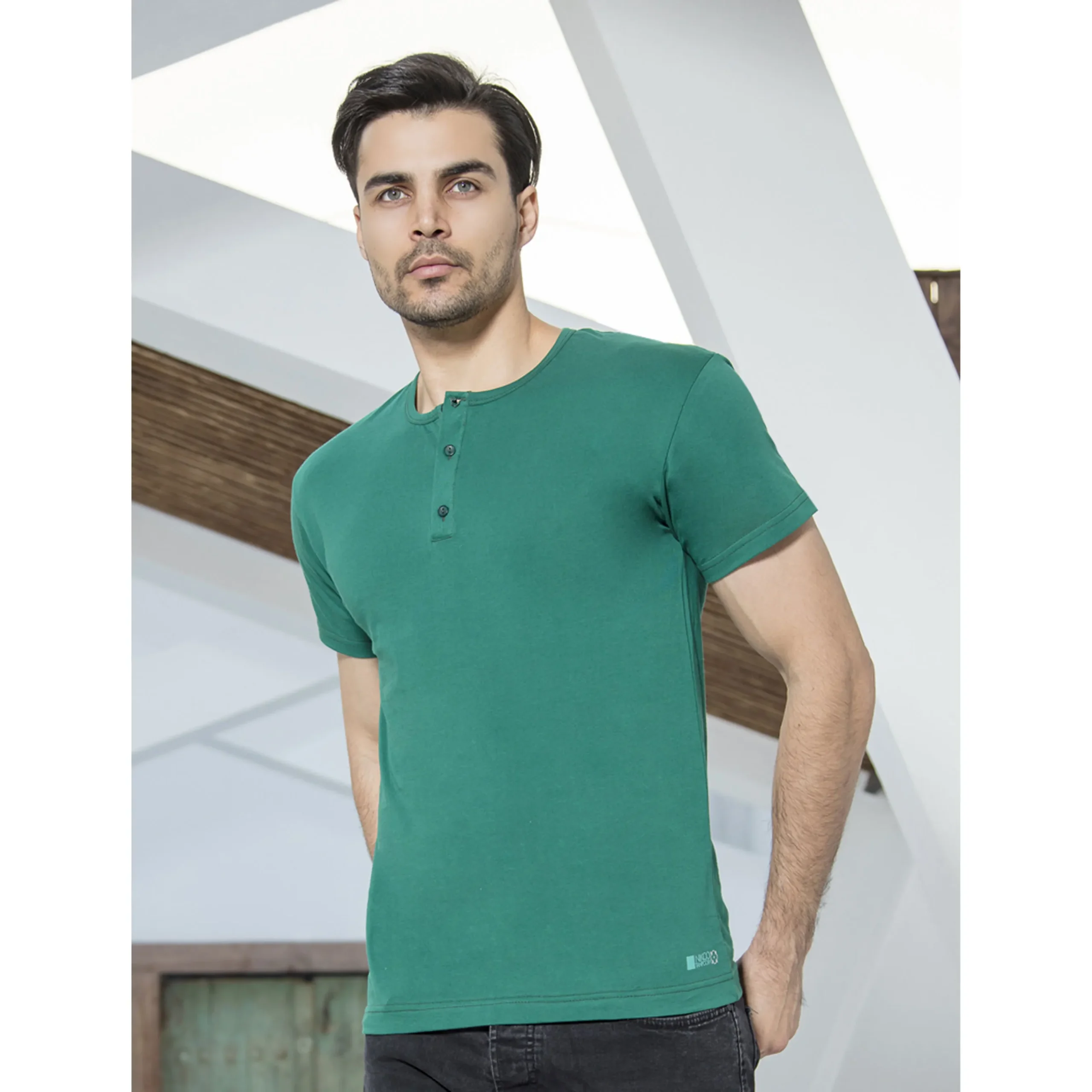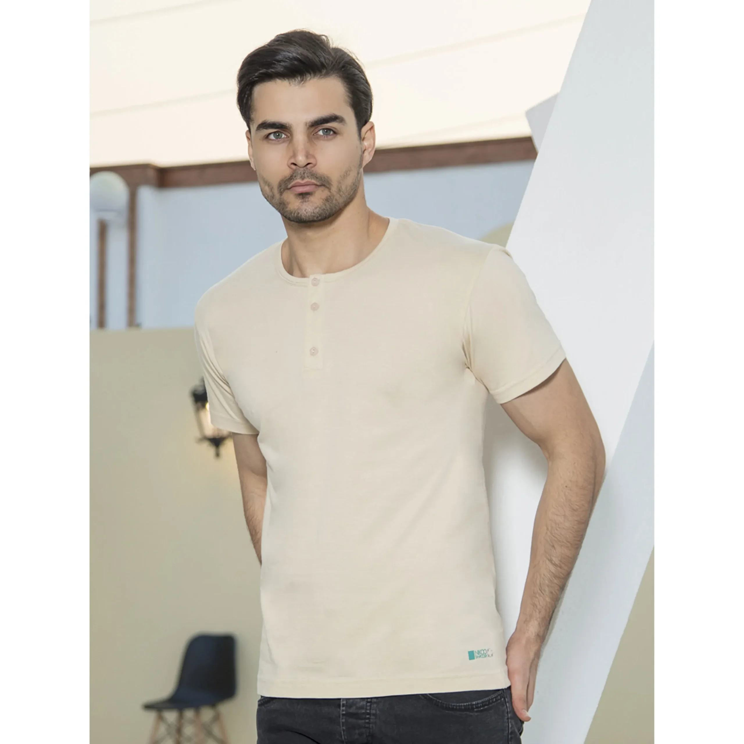 زیرپوش مردانه نیم آستین یقه سه دکمه ساده رنگی