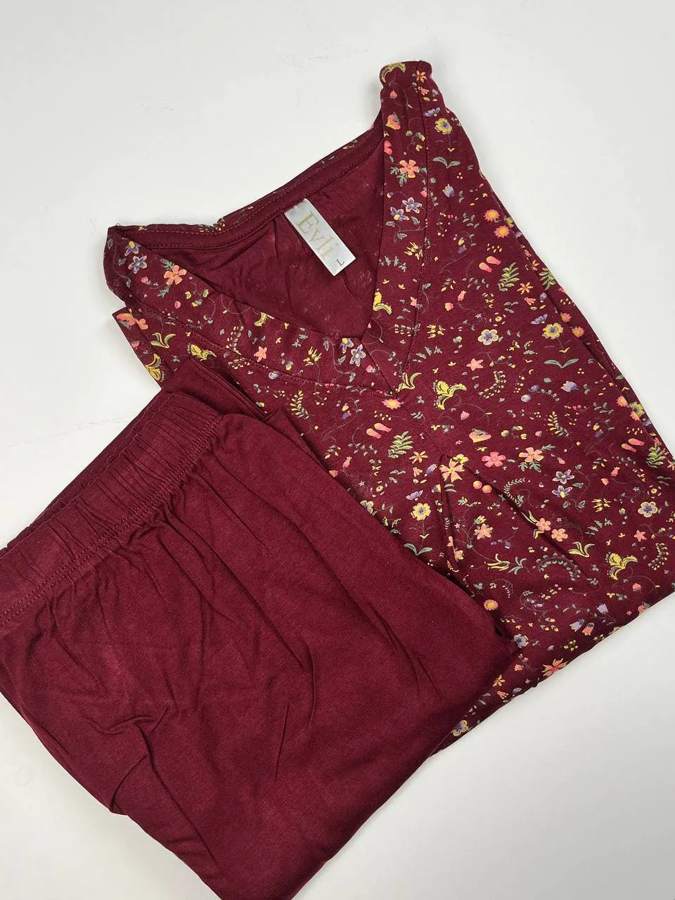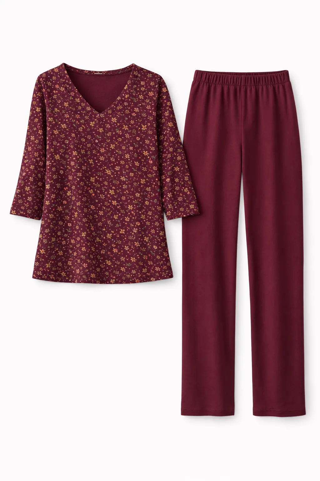 ست بلوز و شلوار زنانه EVLI با جنس مودال، دوخت درجهیک و رنگ زرشکی، مناسب استفاده روزمره و استایل راحت.