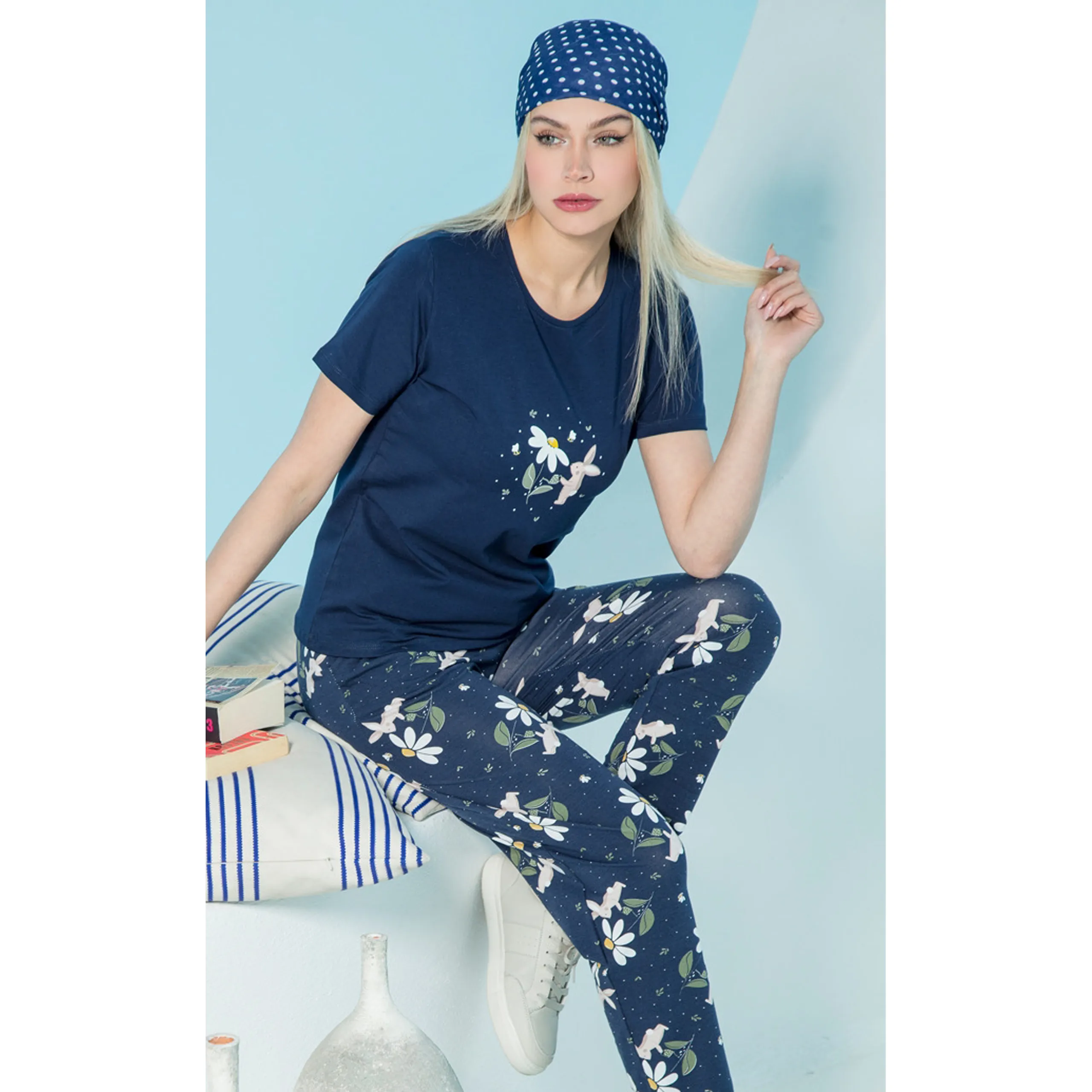 ست زنانه تی شرت و شلوار چاپدار سرمه ای بلکس