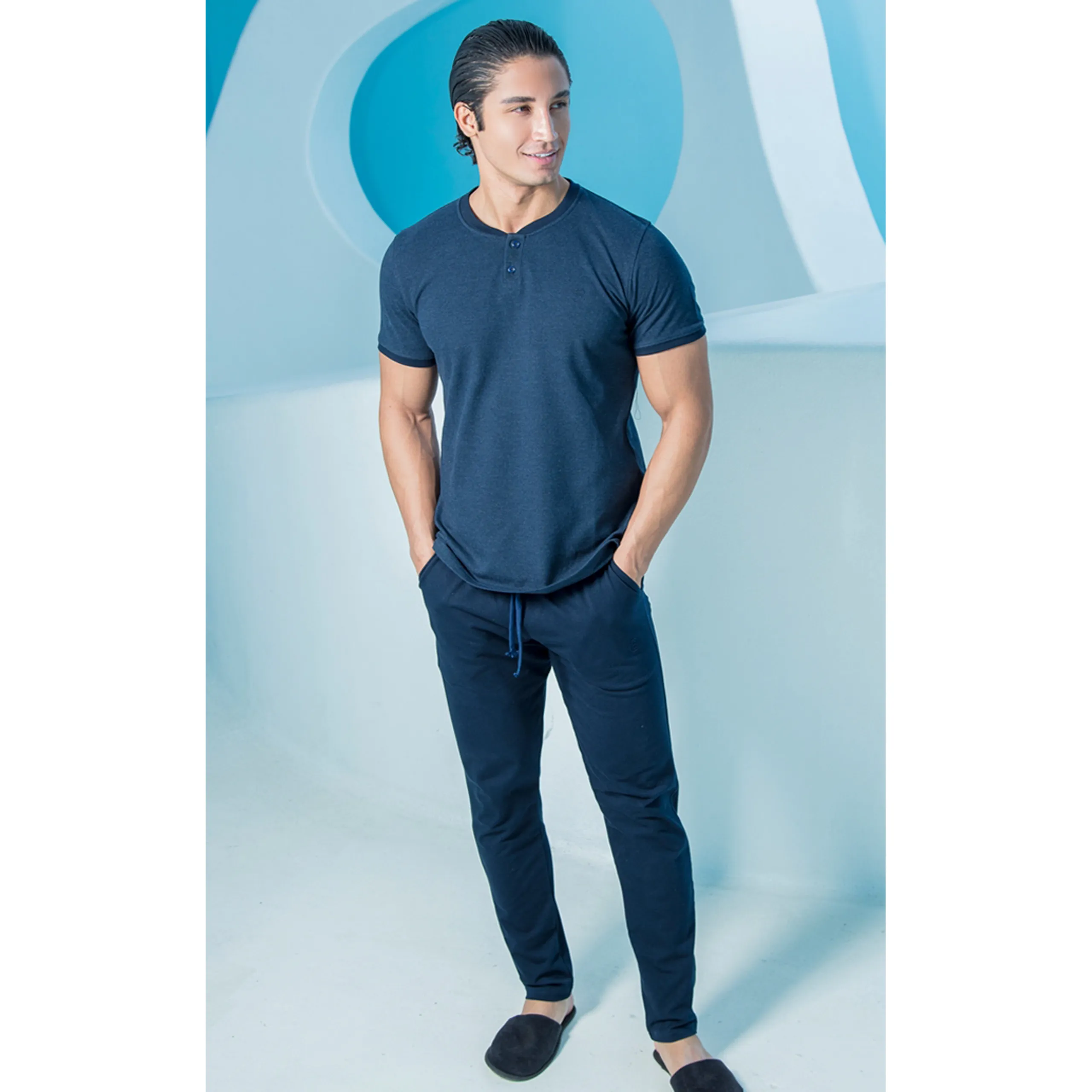 ست مردانه تی شرت جودون دو دگمه و شلوار بلکس