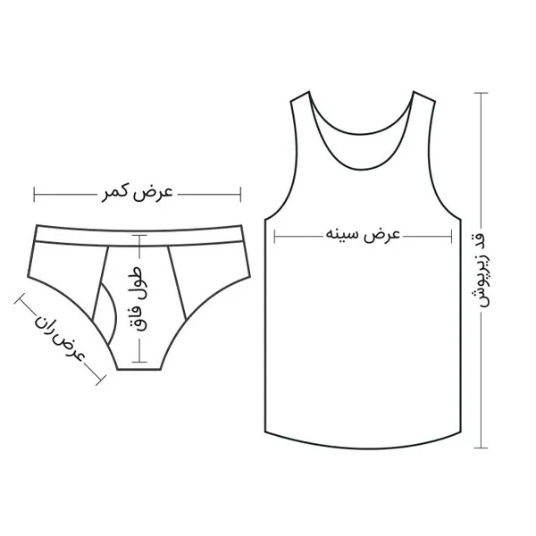 | Size | قد زیرپوش | دور سینه | کمر شورت |