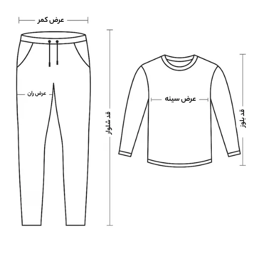 | سایز | قد کت | عرض سینه | قد شلوار | عرض کمر |