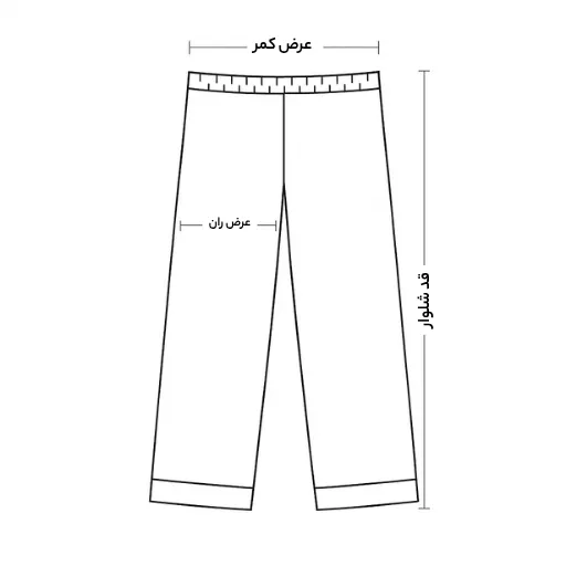| سایز | قد شلوار | عرض ران | عرض کمر (معمولی) | عرض کمر (کشیده) |