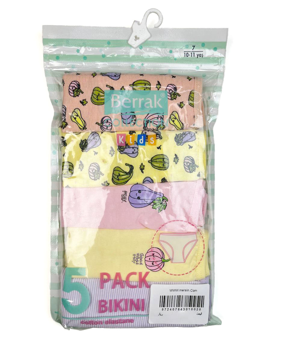 شورت دخترانه نخی براک با طرحهای فانتزی میوهای در پک ۵ عددی، تهیهشده از نخ پنبهای لطیف و ضد حساسیت، مناسب برای استفاده روزمره کودکان ۲ تا ۱۲ سال.