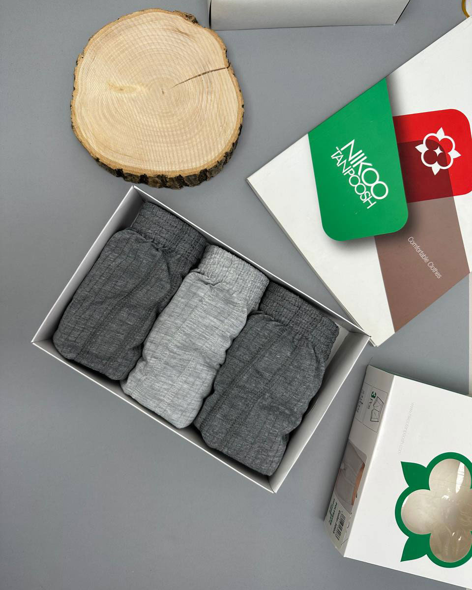 شورت پادار مردانه کمرکش لیفه ای ملانژ سوزن خالی – بسته 3 عددی