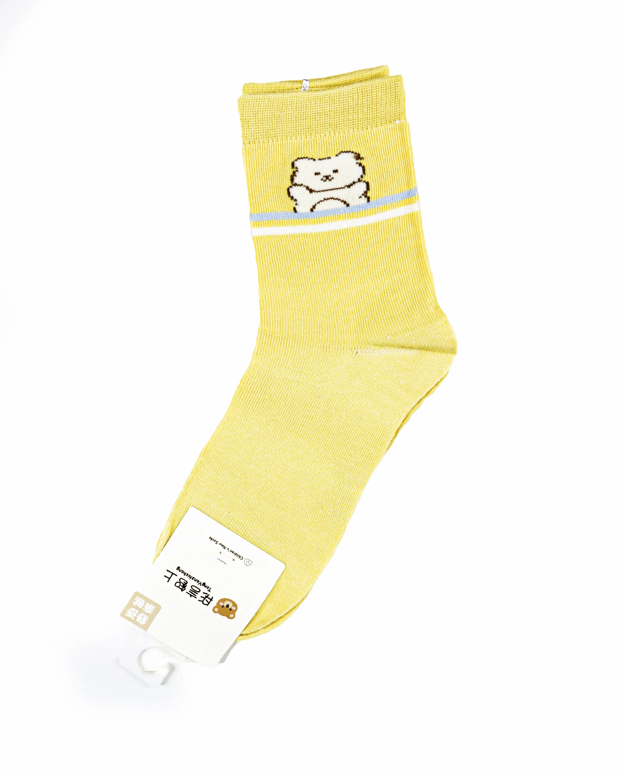 پک 5 عددی جوراب دخترانه نیم ساق طرح خرس