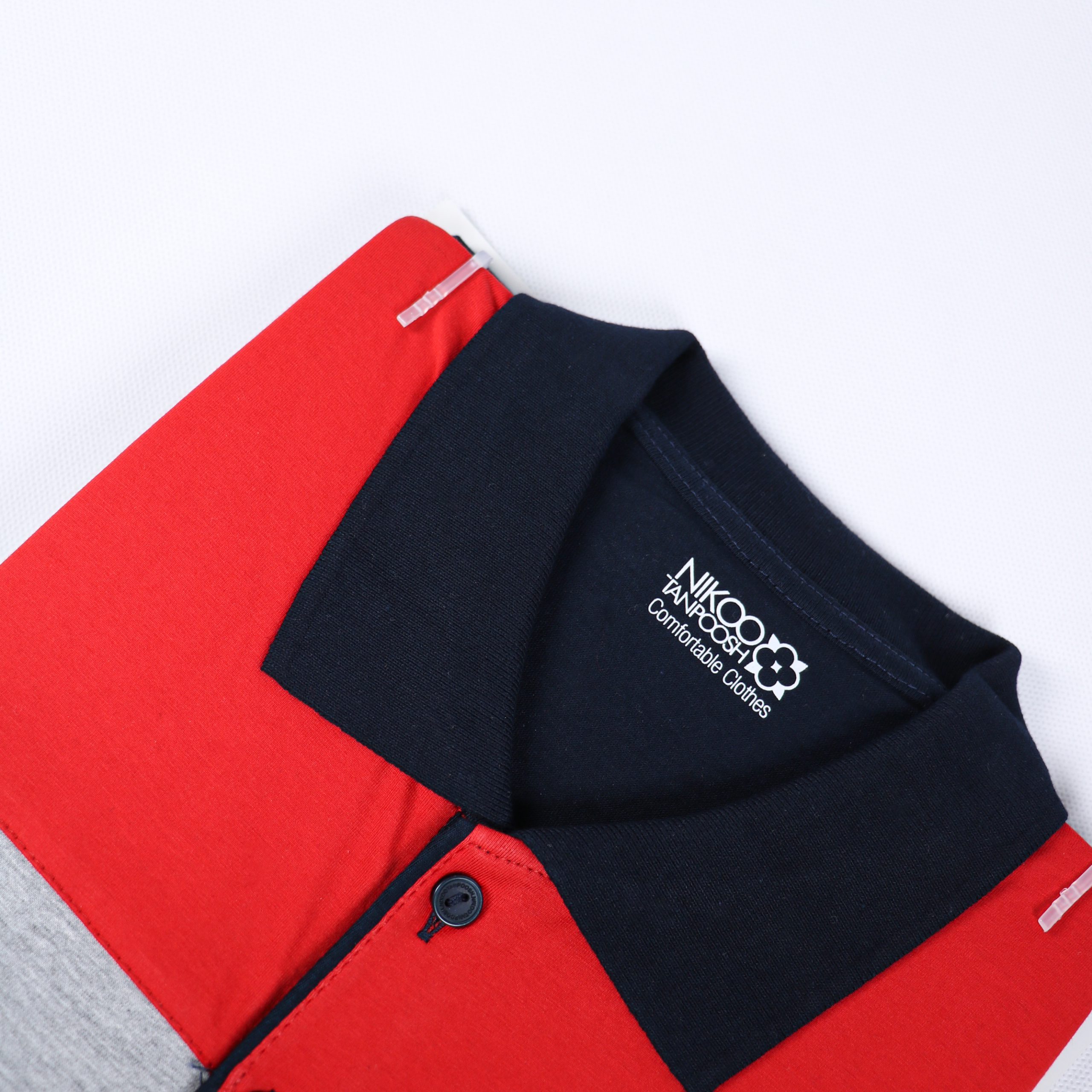 - رنگ: سرمه ای ( قسمت بالای تیشرت قرمز و طوسی ملانژ )