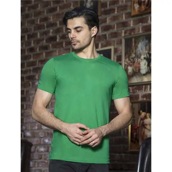 تیشرت یقه گرد ساده رنگی مردانه به دلیل وجود نداشتن نخ مصنوعی و سوراخ های کوچک در الیاف آن به راحتی دما و رطوبت بدن را تنظیم