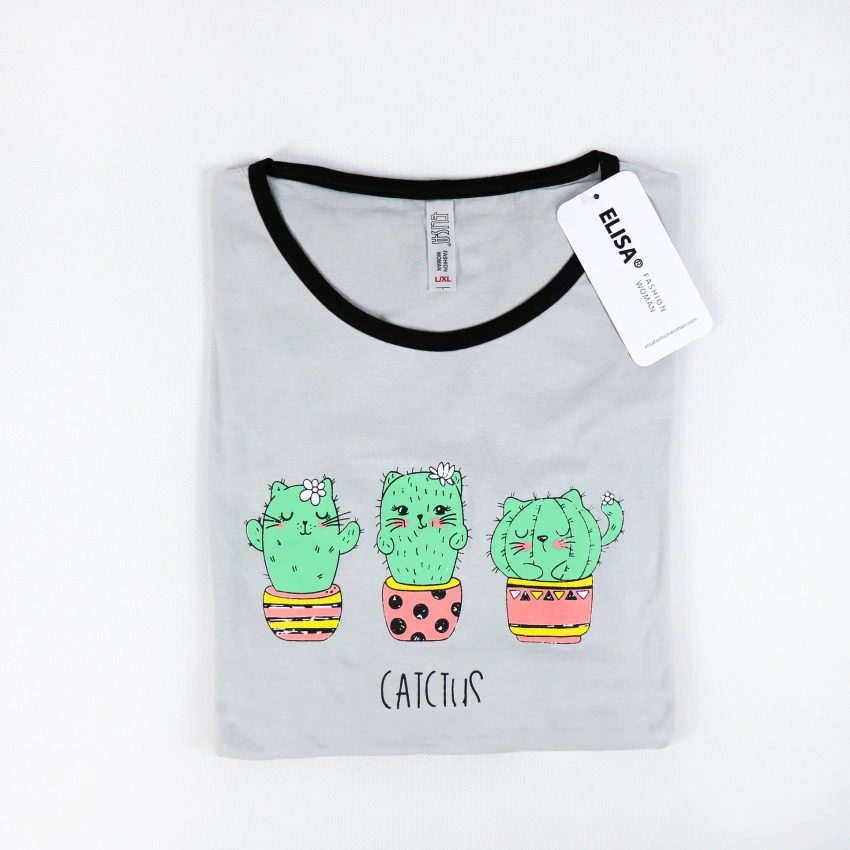 تیشرت زنانه طرح کاکتوس یقه مشکی